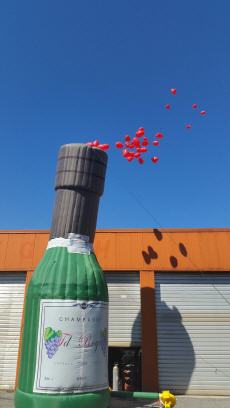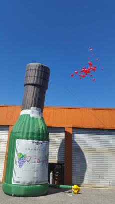 Diese aufblasbare Champangnerflasche ist ideal für Hochzeiten.
