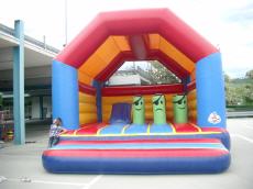 Tolle Hüpfburg mit großer Hüpffläche und integrierten Spielmöglichkeiten. Dieses Model ist mit Sonnen/Regendach ausgestattet, somit fällt Ihre Veranstaltung nicht ins Wasser. Kommt bei den Kleinen immer prima an.