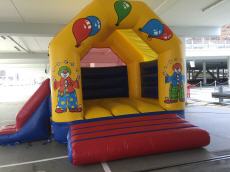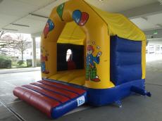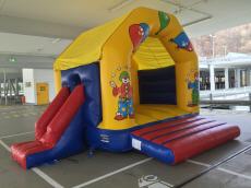 Schöne und farbenfrohe Hüpfburg, die zum Hüpfen förmlich einlädt.